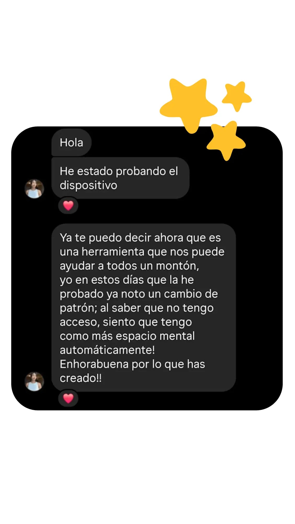 El 87 % de nuestros usuarios reduce 1 h diaria de uso en la primera semana.