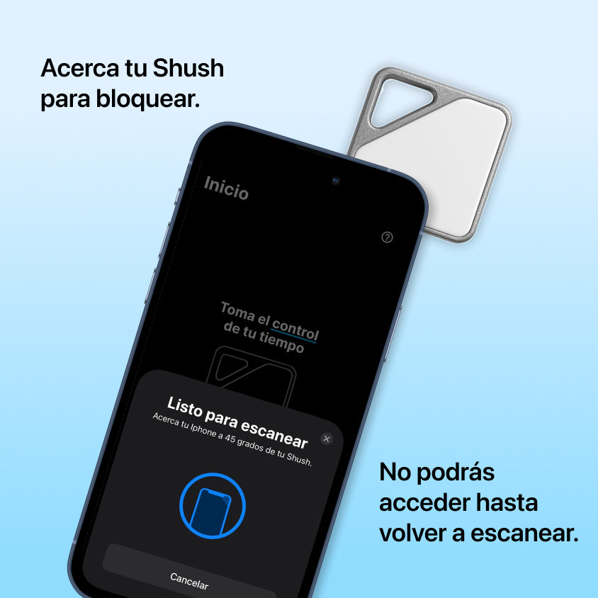 ¡Claro que no! Cuando recibas tu Shush, escanéalo para descargar la app. Selecciona las apps a bloquear y... ¡listo!